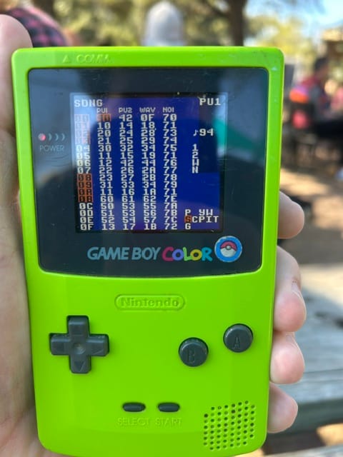 The app on the Game Boy I'm using is called Little Sound DJ [LS DJ], and it’s a typical music tracker software. But if I wanted to, I could write the song entirely on Game Boy. The reason I don't, obviously, is gonna be the eye strain, 'cause it's a tiny screen. Even with a backlit screen, it's really tiring to write directly on Game Boy. Some people want to truly write on the hardware. They'll do things like put the Super Game Boy on a Super Nintendo Entertainment System, like a thing that mounts on the cartridge. There's also something similar for the Game Cube. Another thing you can do, which is what I do, is I have an emulator set up on my desktop computer, so I can scale to however large I want.